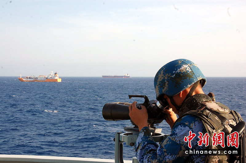2009年1月29日,中國海軍首批護(hù)航編隊(duì)“武漢”艦收到希臘商船“ELENI G”號發(fā)出的緊急呼救。編隊(duì)立即派直升機(jī)載著特戰(zhàn)隊(duì)員前往救援,發(fā)現(xiàn)3艘海盜快艇正從不同方向圍攻希臘商船。特戰(zhàn)隊(duì)員發(fā)射信號彈,成功將其解救。船長激動(dòng)的說:“感謝上帝!感謝中國海軍!”