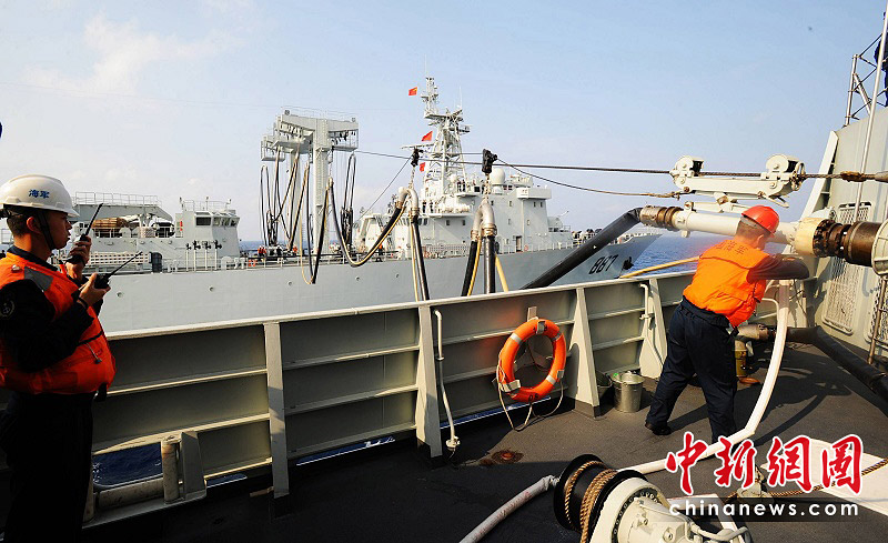 3月12日,在阿拉伯海上進行第二次補給。江山 攝
