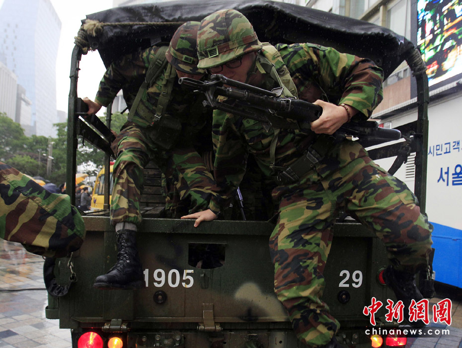 5月24日,韓國軍隊(duì)在靠近韓朝非軍事區(qū)的揚(yáng)口舉行軍事演習(xí)。圖片來源:中國新聞網(wǎng)
