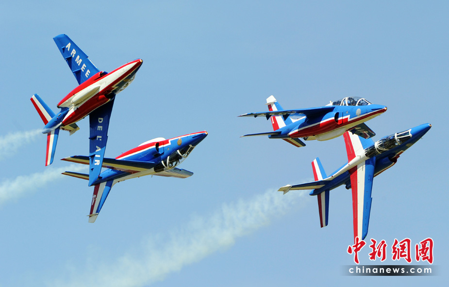 5月25日,法國(guó)巡邏兵特技飛行表演隊(duì)在普羅旺斯地區(qū)進(jìn)行驚險(xiǎn)的飛行表演。