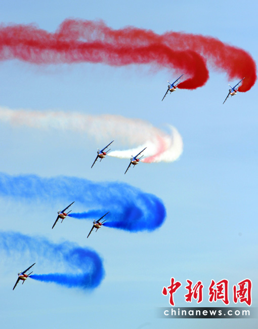 5月25日,法國巡邏兵特技飛行表演隊在普羅旺斯地區(qū)進(jìn)行驚險的飛行表演。