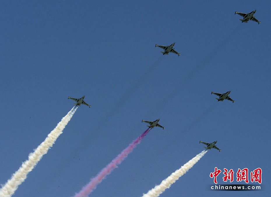 5月26日,在格魯吉亞首都第比利斯,受閱部隊(duì)從議會(huì)大廈前走過。當(dāng)日,格魯吉亞在第比利斯舉行慶祝格獨(dú)立日閱兵典禮,格總統(tǒng)薩卡什維利在議會(huì)大廈前檢閱軍隊(duì)并發(fā)表演講。圖片來源:中國(guó)新聞網(wǎng)