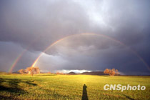 草原現(xiàn)罕見(jiàn)雙彩虹
