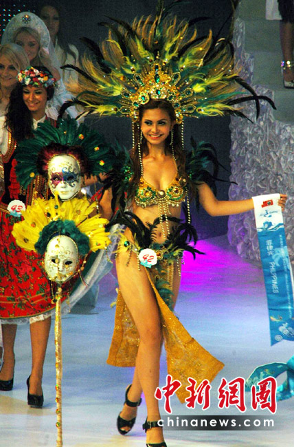5月29日晚,第35屆國際比基尼小姐全球總決賽在三亞“美麗之冠”落下帷幕,22歲的羅馬尼亞選手Diana Irina Boanca摘得冠軍。總決賽還評選出了四季小姐,18歲的中國選手趙茜獲得“秋季小姐”,澳大利亞、委內(nèi)瑞拉和拉脫維亞選手分別獲得春、夏、冬季小姐。共有來自世界各地的64位佳麗參加了總決賽的角逐。當(dāng)晚,佳麗們展示了各自國家或地區(qū)特色的民族服飾,用不同的方式展示了不同風(fēng)格的比基尼“秀”,性感迷人。 中新社記者 尹海明攝