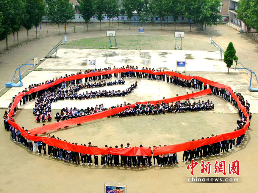 5月31日是第23個(gè)“世界無(wú)煙日”,今年的主題是:性別與煙草——抵制針對(duì)女性的市場(chǎng)營(yíng)銷。吸煙有害健康早已成為不爭(zhēng)的事實(shí)。有關(guān)醫(yī)學(xué)研究表明,吸煙可導(dǎo)致心腦血管疾病、癌癥、慢性阻塞性肺病等多種疾病,已成為繼高血壓之后的全球第二號(hào)殺手。為了您的健康,請(qǐng)熄滅您手中的香煙。圖為5月28日,河南省靈寶市陽(yáng)平一中,500多名學(xué)生用廢舊橫幅拼成“禁止吸煙”的圖案,倡導(dǎo)“無(wú)煙校園,低碳生活”的理念。中新社發(fā) 趙華 攝