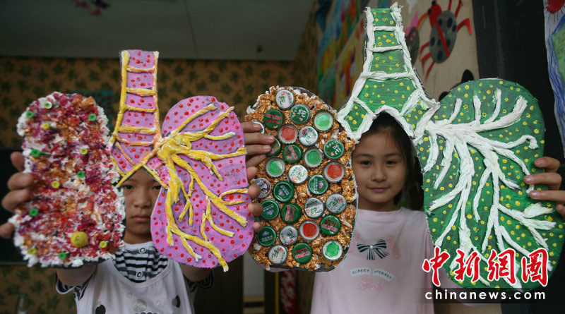 5月31日是第23個“世界無煙日”,今年的主題是:性別與煙草——抵制針對女性的市場營銷。吸煙有害健康早已成為不爭的事實。有關(guān)醫(yī)學(xué)研究表明,吸煙可導(dǎo)致心腦血管疾病、癌癥、慢性阻塞性肺病等多種疾病,已成為繼高血壓之后的全球第二號殺手。為了您的健康,請熄滅您手中的香煙。圖為5月29日,在“世界無煙日”前夕,湖北襄樊學(xué)院少兒美術(shù)研究基地組織開展“珍愛生命、遠(yuǎn)離煙草”主題宣教活動。龔波 攝