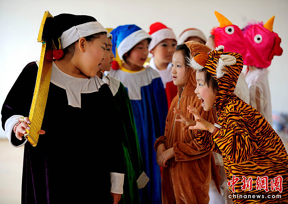 5月28日,遼寧沈陽(yáng),沈陽(yáng)黃河大街小學(xué)的小朋友正在表演舞蹈描述自己的幸福的童年。紅一/CFP