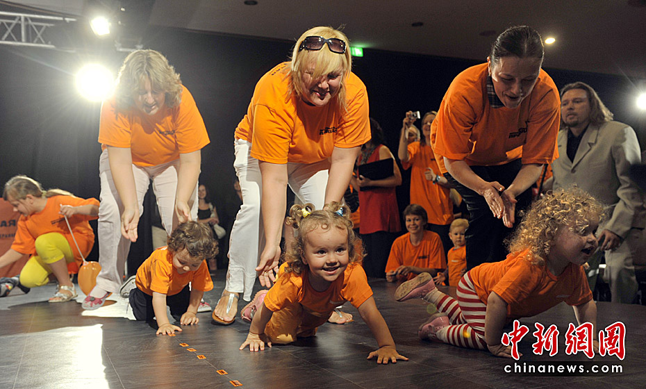 當(dāng)?shù)貢r(shí)間5月31日,烏克蘭基輔舉行了寶寶爬行大賽。數(shù)十名嬰兒在母親的鼓勵(lì)下奮力向4米外的終點(diǎn)爬去。圖片來源:中國新聞網(wǎng)