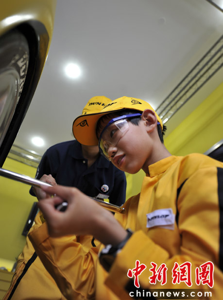 圖為孩子在體驗賽車場上的技師。 中新網(wǎng)記者 王紅綱 攝