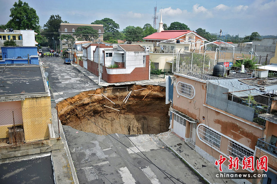 5月31日,受颶風(fēng)“阿加莎”的影響,危地馬拉首都危地馬拉城出現(xiàn)一個(gè)深達(dá)60米塌陷洞,有目擊稱(chēng)一幢3層建筑墜入洞中,至少造成1人死亡。圖片來(lái)源:中國(guó)新聞網(wǎng)