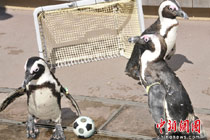 企鵝踢足球迎接世界杯
