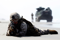 6月5日,諾曼底登陸66周年前夕,一批演員身著二戰(zhàn)時(shí)期美軍軍服,在法國(guó)諾曼底卡倫坦重現(xiàn)了這次著名的戰(zhàn)役。
