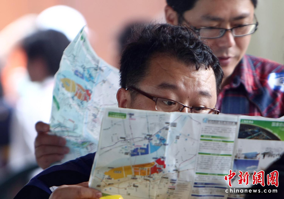 截至6月5日19點(diǎn)30分,上海世博會(huì)累計(jì)參觀者已超過1000萬人次。據(jù)悉,上海世博會(huì)的規(guī)劃用地為5.28平方公里,約242個(gè)國(guó)家和國(guó)際組織參展分布在浦東和浦西兩大區(qū)域。要想在這么大的地方找到自己想去的地方,那么世博地圖就是必須的裝備。圖為上海世博園內(nèi)游客正在地圖上尋找自己要去的地方。中新社記者 杜洋 攝