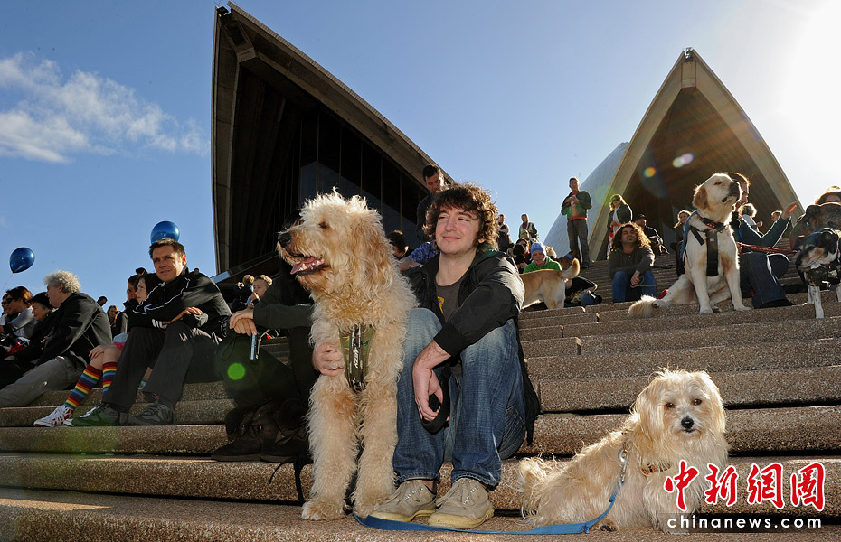 6月5日,澳大利亞悉尼歌劇院外舉辦了全球首場狗能聽懂的音樂會,約有1000人帶著數(shù)百只愛犬在劇院前庭和階梯落坐,聆聽“狗的音樂”,整場音樂會全長20分鐘。圖片來源:中國新聞網(wǎng)