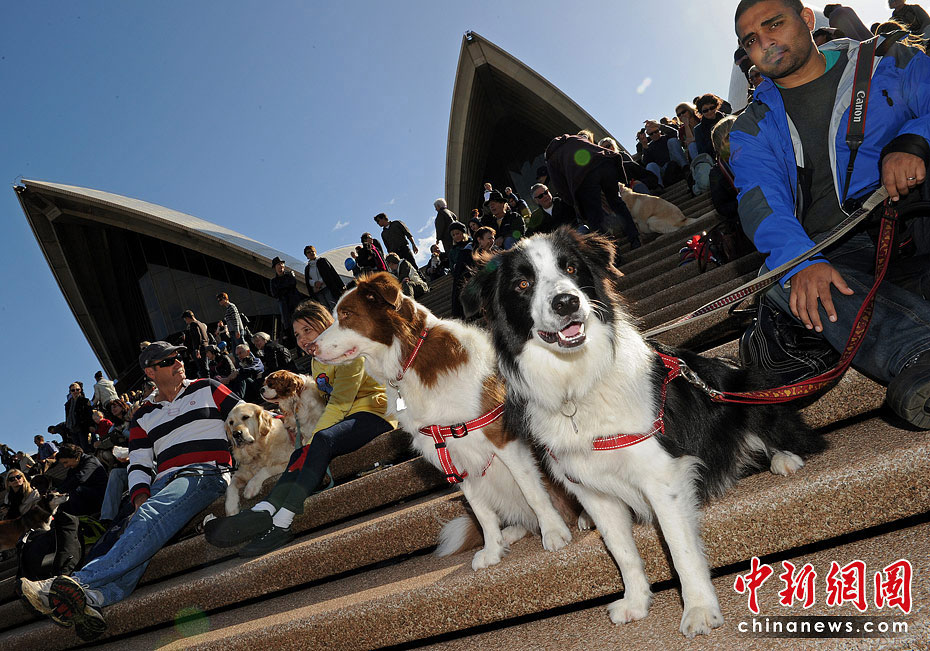 6月5日,澳大利亞悉尼歌劇院外舉辦了全球首場狗能聽懂的音樂會(huì),約有1000人帶著數(shù)百只愛犬在劇院前庭和階梯落坐,聆聽“狗的音樂”,整場音樂會(huì)全長20分鐘。圖片來源:中國新聞網(wǎng)