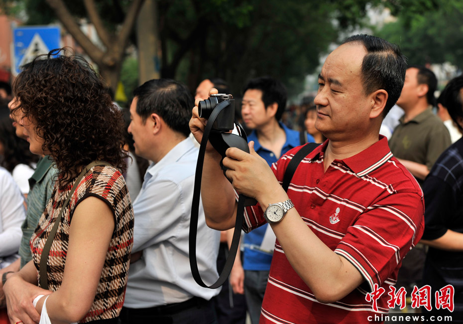 2010年全國高考6月7日日拉開大幕,957萬考生走進考場。由于報名人數(shù)減少,而招生計劃增加,教育部預計今年全國高考平均錄取率將會增加近7%。圖為首都師范大學第二附屬中學考點。中新網(wǎng)記者 金碩 攝