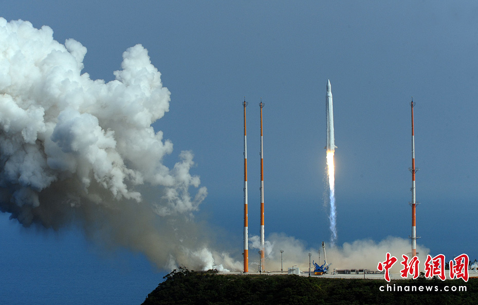 當?shù)貢r間6月10日下午5時左右在韓國發(fā)射升空的“羅老”號運載火箭脫離了預定軌道并墜毀。繼去年首次發(fā)射失敗后,韓國再次將該國運載火箭“羅老”號發(fā)射升空。但在火箭升空后不久,就失去了與地面的聯(lián)系。據(jù)韓國YTN電視臺的電視畫面顯示,升空的“羅老”號在空中70公里處脫離了預定軌道并墜毀。圖片來源:中國新聞網(wǎng)