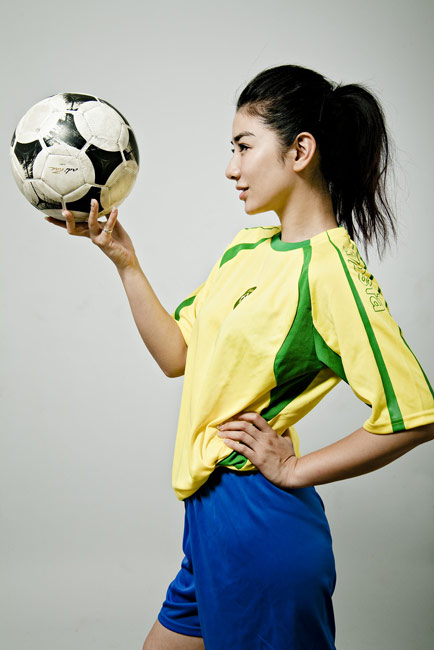 近日,黃奕身穿巴西隊(duì)球衣拍攝了一組世界杯足球?qū)懻,為南非世界杯助威喝彩?/p>
