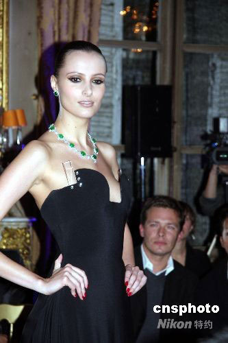 以“美麗永恒”為主題的中華風尚珠寶藝術展十月二日晚在法國巴黎舉行。圖為模特兒在展示中國珠寶作品。中新社發(fā) 吳衛(wèi)中 攝