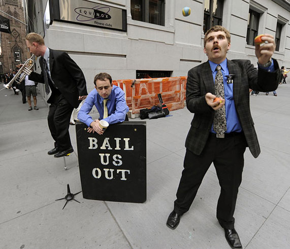 經(jīng)濟及科技類新聞單幅銅獎照片:《昔日白領(lǐng)街頭賣藝》