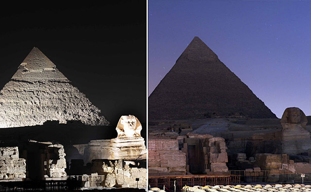 埃及開(kāi)羅:2009年3月28日,埃及吉薩金字塔群參加“地球1小時(shí)”活動(dòng)。