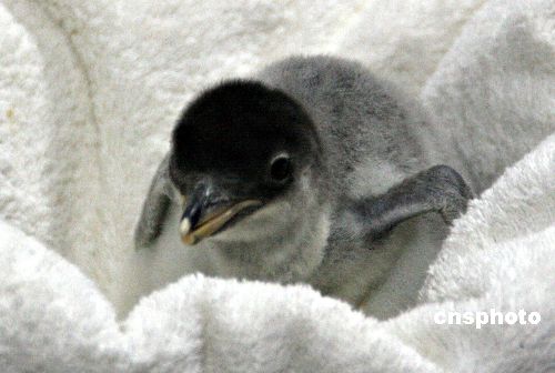 2008年1月2日上午,哈爾濱極地館里的企鵝小寶寶出生已滿10天。由于小寶寶是個“早產(chǎn)兒”,之前企鵝蛋又受過傷,因此所有人都迫切想知道小寶寶到底健不健康。今天經(jīng)過專家對它進行全面的體檢,測得體重近400克,毛色良好屬于“健康寶寶”。中新社發(fā) 姚庭山 攝