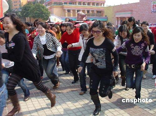 3月6日,長沙世界之窗廣場內,千余名女士穿著4厘米以上的細跟高跟鞋賽跑,用這種特殊的方式紀念奧運年的婦女節(jié),并為北京奧運加油。中新社發(fā) 肖前輝 攝