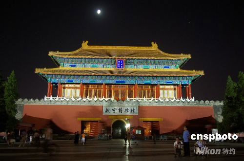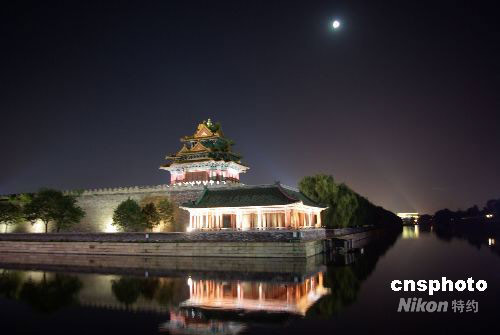 9月11日,中秋節(jié)即將到來,晚上北京明月高懸,故宮夜景美麗醉人。中新社發(fā) 九州 攝