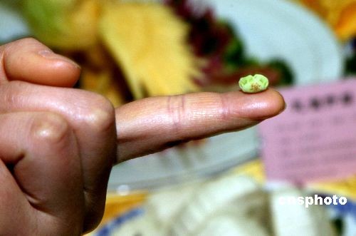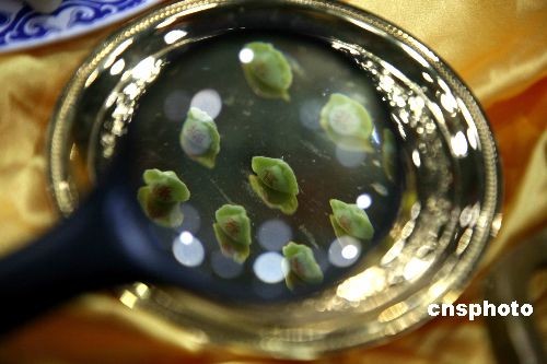 世界上最小的餃子有多大?12月20日上午,在濟南舉辦的第二屆齊魯民間膳食文化藝術節(jié)開幕式上,直徑僅有8毫米的齊魯珍珠餃亮相。餃子的餡由珍珠泉內養(yǎng)殖的花蓮魚肉調成,每個上面還有文字,須通過放大鏡才能看清。中新社發(fā) 王輝 攝