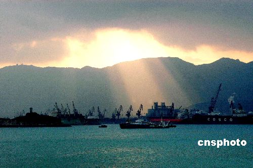 1月9日早晨,江蘇連云港云臺(tái)山上空出現(xiàn)了美麗壯觀的太陽光柱現(xiàn)象。初升的太陽透過厚厚的云層,打開一道“天窗”,周圍產(chǎn)生了強(qiáng)烈的七彩光暈,照射著東方大港港口,呈現(xiàn)出酷似舞臺(tái)聚光燈的光束效果,與碧綠的海水相映,形成了奇幻的海天意境和瑰麗色彩。中新社發(fā) 王春 攝