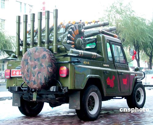 10月21日,一輛酷似軍用戰(zhàn)車的“禮炮車”出現在黑龍江小鎮(zhèn)。當日,黑龍江省牡丹江地區(qū)的穆棱市八面通鎮(zhèn)上,一家婚慶禮儀公司推出婚慶“禮炮車”服務項目,頗讓生活在小鎮(zhèn)上的居民感到新鮮。中新社發(fā) 莊文斌 攝