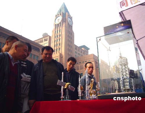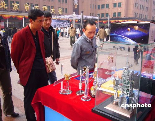 10月25日,漂亮逼真的“嫦娥一號”模型在北京王府井大街亮相,吸引了過往行人的目光。中新社發(fā) 玉龍 攝