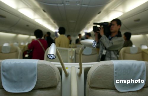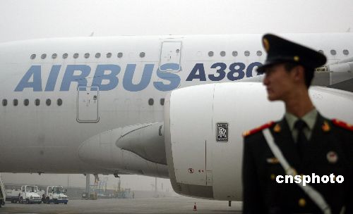 10月26日,生產(chǎn)編號為007的空中客車A380客機停靠在北京首都國際機場N104機位,接待北京媒體及部分嘉賓的參觀。此次A380中國大陸之行為期一周,包括廣州、上海及北京三個城市,這是A380飛機2007年環(huán)球飛行之旅的重要部分。當日因北京的大霧天氣,空中客車公司取消了A380北京體驗飛行的計劃,但將繼續(xù)其在中國大陸之行最后一站的展示活動。中新社發(fā) 楊可佳 攝
