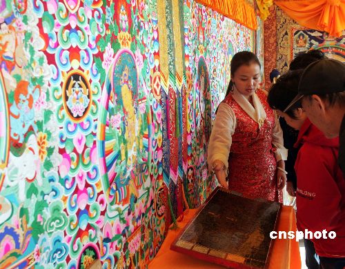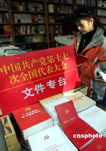 十一月二日,一年一度的北京秋季書市拉開帷幕。來自中國書店等五百余家參展商為廣大讀者奉獻上了二十余萬種圖書“大餐”。中國青海熱貢藝術(shù)展也首次亮相書市。在書市的首日,有關(guān)十七大的圖書也成為熱銷圖書之一。中新社發(fā) 任海霞 攝
