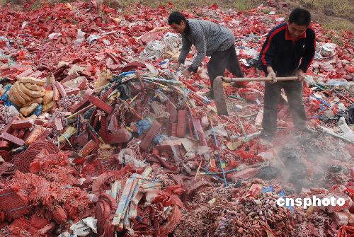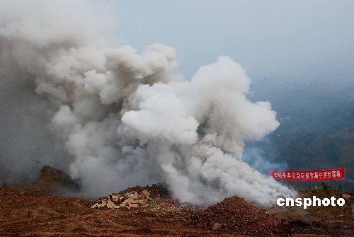 11月8日,重慶市云陽縣集中銷毀了620萬響非法生產(chǎn)和經(jīng)營(yíng)的煙花爆竹,消除了安全隱患。這些煙花爆竹是該縣在全國消防安全日前夕,對(duì)全縣43個(gè)鄉(xiāng)鎮(zhèn)進(jìn)行排查時(shí)收繳的。中新社發(fā) 劉小洋 攝