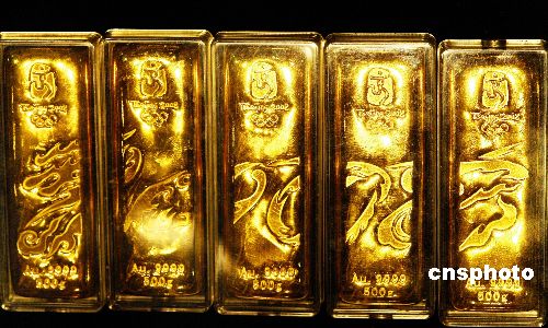 2007年11月10日,北京金博會(huì)上的全套“北京奧運(yùn)金”本色系列組合成一條完整的龍亮相。據(jù)稱“龍尾”奧運(yùn)金條將在本月陸續(xù)在全國(guó)上市!氨本⿰W運(yùn)金”是世界上第一套具有奧運(yùn)概念的紀(jì)念金條,其每組的含金量均為99.99%,按重量分為50克、100克、500克和1000克四種規(guī)格,每組限量發(fā)行2008公斤。中新社發(fā) 馬健 攝