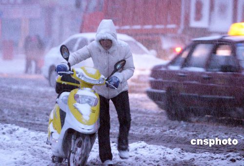 11月19日,隨著一股冷空氣的到來,丹東迎來中到大雪天氣。降雪伴隨著大幅降溫,迅速形成了大面積的積雪,給交通帶來不利影響。據(jù)了解,丹東是遼寧此次降雪量最大的地區(qū)。中新社發(fā) 陳浩浩 攝