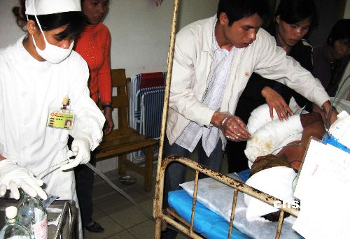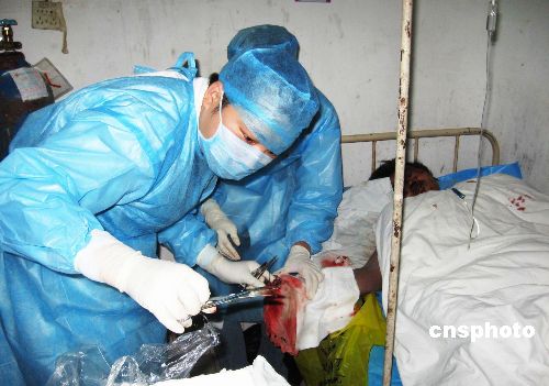 十一月二十四日,廣西北海市合浦縣一家據(jù)稱(chēng)未經(jīng)當(dāng)局批準(zhǔn)開(kāi)設(shè)的私營(yíng)爆竹廠發(fā)生重大爆炸事故,目前已知至少有三人在是次事故中不幸罹難,另有十三人受傷,其中有多名傷員處于生命垂危狀態(tài)。圖為合浦縣人民醫(yī)院在緊急搶救傷員。中新社發(fā) 肖林 攝