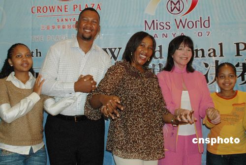十一月二十九日,海南三亞,南非前總統(tǒng)曼德拉的長女(中)長孫(左二)現(xiàn)身海南三亞,在世界小姐機構舉行的新聞發(fā)布會(右二為世界小姐機構主席莫莉夫人)上呼吁更多的人關注艾滋病在全球的蔓延、關愛艾滋病患者。他們此行還帶來了家鄉(xiāng)的兒童合唱團,將于十二月一日晚舉行的第五十七屆世界小姐總決賽晚會上亮相。中新社發(fā) 尹海明 攝