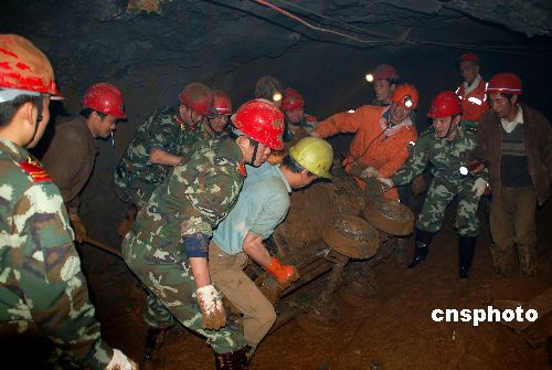 12月13日,安徽武警總隊(duì)蕪湖支隊(duì)武警官兵在井下救援。當(dāng)天,救援指揮部調(diào)集武警蕪湖支隊(duì)40名官兵前來(lái)增援地下清淤及鉆孔工作,井下負(fù)十三米礦井巷道清除淤泥向前推進(jìn)16.8米、通風(fēng)口鉆孔17米。當(dāng)天下午,救援指揮部救援人從從探測(cè)儀上發(fā)現(xiàn),井下有生命跡象。12月11日18時(shí)許,安徽繁昌縣陽(yáng)沖鐵礦發(fā)生一起井下坍塌事故,坍塌的泥石堵住了安全出口,正在作業(yè)的7名礦工被困井下。中新社發(fā) 揚(yáng)勛 攝