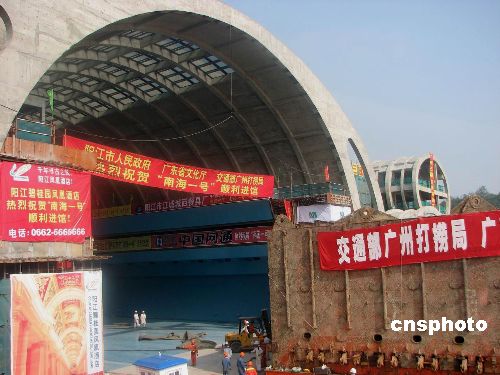 十二月二十八日下午三時(shí)四十五分,“南海一號(hào)”南宋古沉船成功入住廣東海上絲綢之路博物館“水晶宮”。當(dāng)日下午二時(shí)三十分,現(xiàn)場(chǎng)開(kāi)始作業(yè),十分鐘之后,南海一號(hào)的“第一只腳”邁入水晶宮門(mén)口。三點(diǎn)十分左右,即將達(dá)到指定位置三米時(shí),打撈沉井向左偏離,作業(yè)人員通過(guò)調(diào)整氣囊位置和氣壓進(jìn)行糾正。三點(diǎn)三十二分,沉井完全進(jìn)入水晶宮。三點(diǎn)四十五分,南海一號(hào)到達(dá)宮內(nèi)指定位置。中新社發(fā) 索有為 攝
