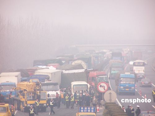 1月8日8時許,由于大霧的原因,合徐高速33公里至37公里段發(fā)生一起特大交通事故,一百余輛車連綿相撞,事故至少造成7人死亡12人受傷。事發(fā)后交警、消防、衛(wèi)生等部門迅速趕至現(xiàn)場處置,到晚上7時許,該路段才陸續(xù)恢復(fù)通行。中新社發(fā) 朱小輝 攝