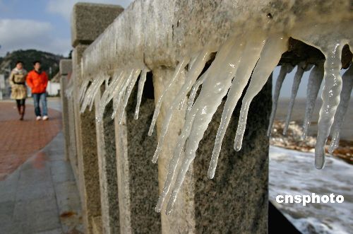 圖:連云港海濱首現(xiàn)海水冰凌
