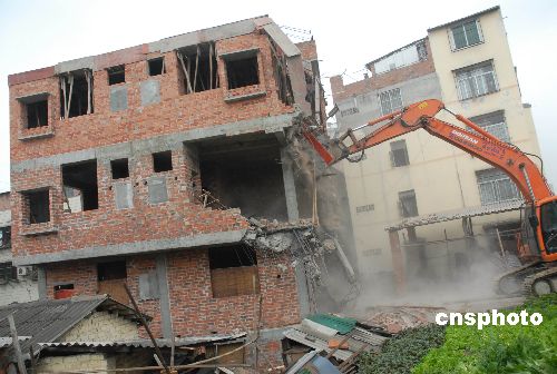 一月十五日,廣西南寧市西鄉(xiāng)塘區(qū)近八百名執(zhí)法人員對該轄區(qū)內(nèi)四戶違法建設樓房進行拆除,拆除違法建筑面積達兩千平方米。據(jù)悉,目前南寧市私房違法搶建現(xiàn)象較為嚴重,對城市的規(guī)劃造成了一定影響,市政府對此采取強拆措施。中新社發(fā) 何卓姿 攝