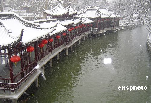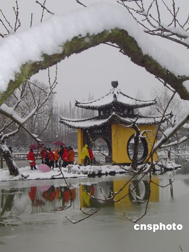 1月26日,雪中的揚(yáng)州瘦西湖公園。1月25日夜,江蘇再次迎來冬雪。據(jù)江蘇省氣象局分析,從1月25日夜到29日,江蘇將出現(xiàn)持續(xù)性降雪天氣,較大降雪出現(xiàn)在27日至28日,氣溫將持續(xù)偏低,并會出現(xiàn)冰凍。中新社發(fā) 施華健 攝