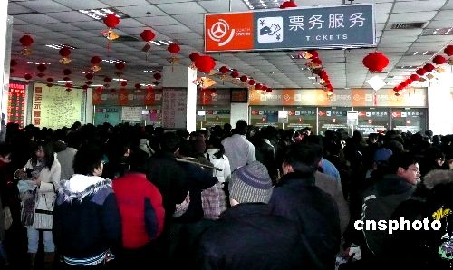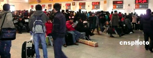 1月26日下午,受強雨雪天氣影響,揚州通往外地的高速公路全部關(guān)閉,大批返鄉(xiāng)過年的旅客滯留。揚州汽車站西站啟動應(yīng)急預(yù)案,在售票大廳特別立牌打出停班信息,開設(shè)退票窗口。據(jù)江蘇省氣象局分析,從1月25日夜到29日,江蘇將出現(xiàn)持續(xù)性降雪天氣,較大降雪將出現(xiàn)在27日至28日,氣溫持續(xù)偏低,會出現(xiàn)冰凍。中新社發(fā) 崔佳明 攝