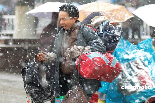 1月27日,旅客頂著風雪準備進入無錫站乘車回家。1月26日起,無錫再次遭遇大范圍降雪天氣。受大雪影響,錫城大部分高速被迫關閉,大量旅客回鄉(xiāng)心切,紛紛改乘火車,無錫站客流激增。中新社發(fā) 迭戈 攝