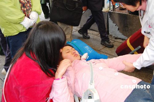 京廣鐵路湖南段從25日起出現(xiàn)大面積旅客列車晚點(diǎn),到28日仍未恢復(fù)正常秩序,仍有七萬(wàn)多名旅客被迫滯留在廣州火車站。由于長(zhǎng)時(shí)間候車,有的旅客在現(xiàn)場(chǎng)暈倒,醫(yī)護(hù)人員進(jìn)行了緊急救治。中新社發(fā) 柯小軍 攝
