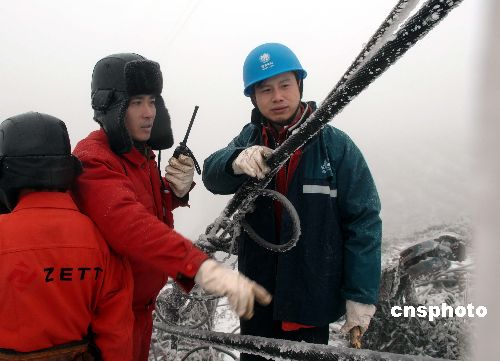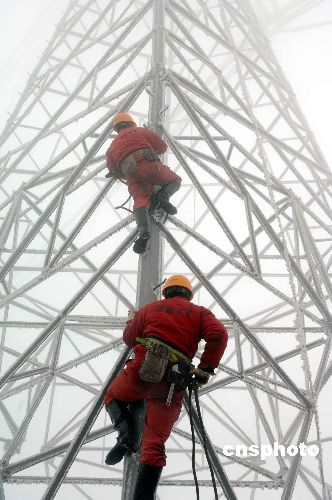 圖:浙江省冰凍嚴重 送變電職工搶修超高壓線