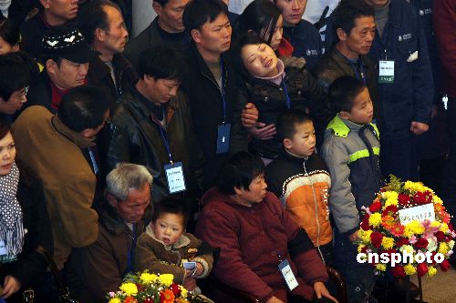 1月30日下午,為確保國家電網(wǎng)安全而獻(xiàn)出寶貴生命的湖南電力公司員工羅海文、羅長明、周景華三位烈士的追悼大會(huì)在長沙陽明山殯儀館舉行。1月末,湖南正遭遇五十年一遇的冰雪災(zāi)害,三位烈士于26日在對(duì)電網(wǎng)線路人工除冰時(shí),從高空墜地身亡。圖為追悼會(huì)上悲痛欲絕的烈士家屬。中新社發(fā) 白祖偕 攝